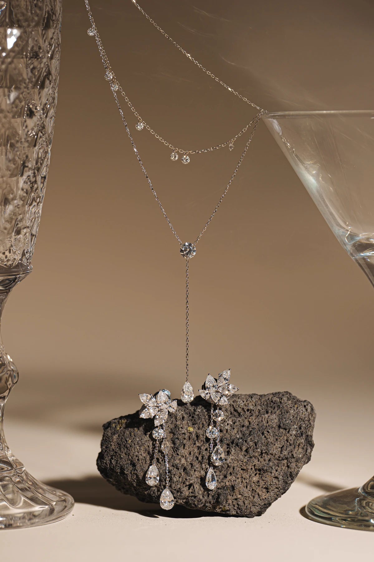 Inspired by the purity of nature’s most delicate form, The Dew Drop Collection captures the fleeting beauty of morning dew suspended in time. Each diamond is pierced directly through, allowing light to dance effortlessly across its surface, unencumbered by traditional settings. This innovative craftsmanship creates an ethereal, floating effect—where brilliance appears weightless, and elegance is redefined. Designed for those who seek understated luxury, this collection embodies the essence of fluidity, light and timeless sophistication.
